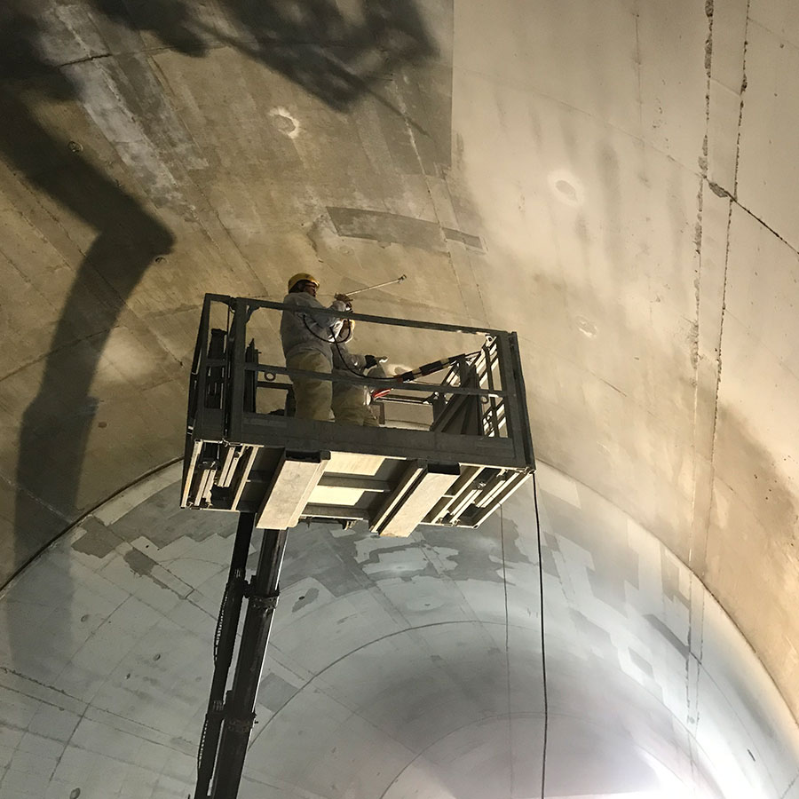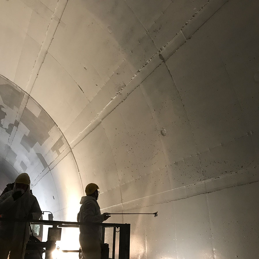 Još jedan problem u tunelogradnji predstavlja djelomičan propust na primarnoj podgradi te posljedično prodor vode kroz dilatacije sekundarne (unutarnje) obloge. Vrlo česta sanacija prodora iza sekundarne obloge je injetiranje gel zavjesom (kontaktno injektiranje). Kroz konstrukciju sekundarne obloge buše se rupe u obliku mreže te se injektira gel zavjesa. Smola za injektiranje konsolidira susjedno tlo te čini vodonepropusnu zavjesu sa stražnje strane konstrukcije.